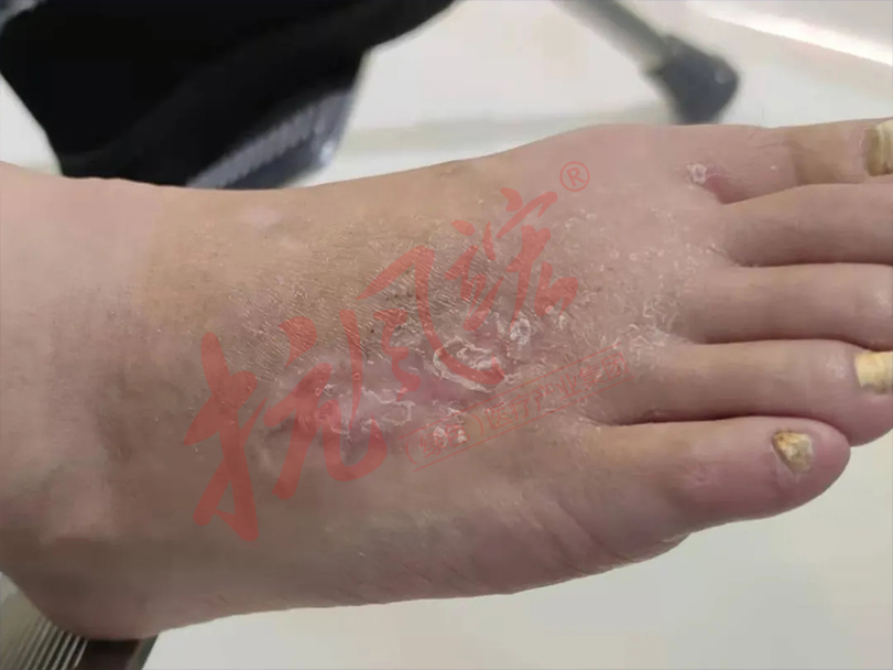 年僅32歲的痛風(fēng)患者關(guān)海強已被病痛折磨了八年,服用過多種藥物和偏方,導(dǎo)致肝腎受損,全身痛風(fēng)石瘋長,手腳及四肢關(guān)節(jié)長滿痛風(fēng)石,皮膚上也長了很多痛風(fēng)石,錯誤治療導(dǎo)致右腳嚴重潰爛,腳面三條筋裸露在外,全身劇痛,不用說坐起來,就連翻身自己都無法完成,多家大型三甲醫(yī)院的專家都強烈建議“馬上截肢”,否則出現(xiàn)敗血癥就會有生命危險!
